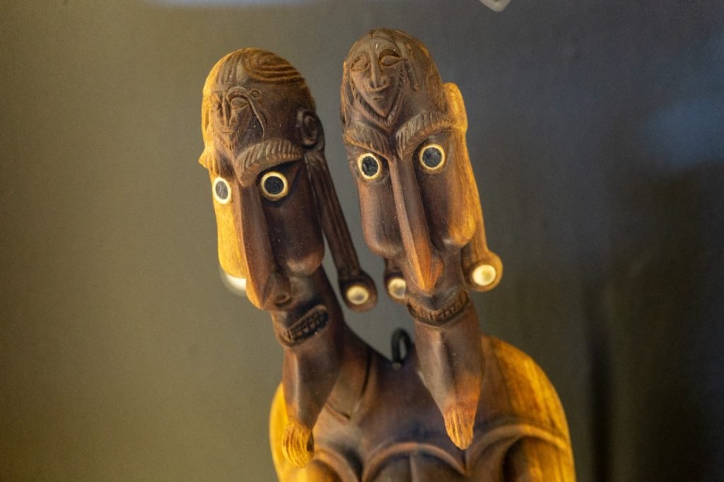 La muestra “Tapa’o Tupuna: Artesanía Ancestral Rapa Nui” considera 28 obras originales realizadas por maestros y aprendices en talleres que se extendieron por cerca de un año en la isla, entre quienes se cuentan destacados artesanos y artesanas, como Tomás Tuki Tepano (Sello de Excelencia de Artesanía de Chile), Isabel Pakarati (Tesoro Humano Vivo), Luis Pate (1956-2020), Benedicto Tuki, Jorge Tuki Pakarati y Pablo Hereveri Teao.