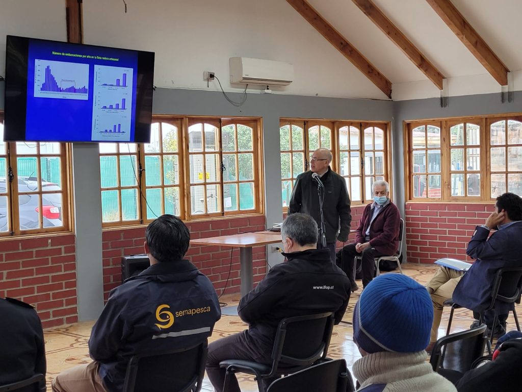 El ciclo de charlas se inició con la exposición “Estado de situación de la pesquería del pez espada en el Océano Pacifico Sur Oriental”, a cargo del investigador Patricio Barría, quien señaló que a nivel nacional el estado de este recurso es saludable. También mencionó que se está desarrollando una evaluación del stock del pez espada, a macro escala, en el Océano Pacifico Sur Oriental por la Comisión Interamericana del Atún Tropical (CIAT).  Esta investigación ha contado con el apoyo y la cooperación científica de Chile y los países ribereños e incorpora la información de las flotas de altura, de Japón, Taiwán y la Comunidad Económica Europea.  El investigador Hernán Miranda expuso sobre el “Estado y avance de los compromisos alcanzados en los talleres de Taltal y Caldera” y realizó una reseña histórica del trabajo conjunto que, por más de una década, se ha realizado entre el IFOP y las organizaciones de pescadores artesanales, con el propósito de visibilizar la flota con arpón en la pesquería del pez espada. Indicó que la metodología de trabajo realizada por el IFOP, es la implementación en terreno del enfoque “Trabajando juntos”, desarrollada por Elinor Ostrom, premio nobel de economía, quien señala una forma de cómo evitar la “Tragedia de los bienes comunes”, como es el caso de las pesquerías. Mencionó que durante el año 2018 se alcanzó un hito importante de parte de la Administración Pesquera consistente en la regularización de más de 120 embarcaciones artesanales en la pesquería del pez espada con arpón y de 754 embarcaciones que participaban en la pesca de la jibia. Actualmente, la flota con al arpón que participa en la pesca del pez espada supera las 1.000 embarcaciones habilitadas y activas a lo largo de la costa desde Arica hasta Valdivia.