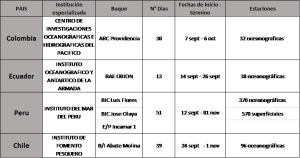 En el crucero conjunto se realizaron un total de 1100 estaciones, abarcando entre la costa Pacífico Colombiana hasta el sur de la zona de Antofagasta.