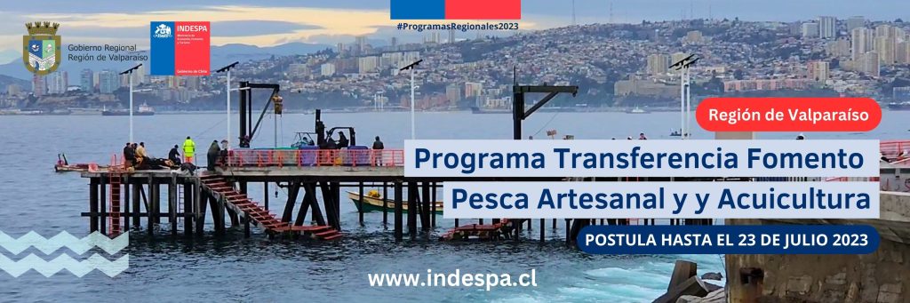 Hasta el 23 de julio próximo las y los pescadores artesanales, acuicultores y acuicultoras de pequeña escala de la región de Valparaíso podrán postular al programa impulsado por el Gobierno Regional de Valparaíso e Indespa -Instituto Nacional de Desarrollo Sustentable de la Pesca Artesanal y de la Acuicultura de Pequeña Escala-, para proyectos e iniciativas de infraestructura y diversificación productiva en beneficio del sector pesquero y acuicultor de pequeña escala.