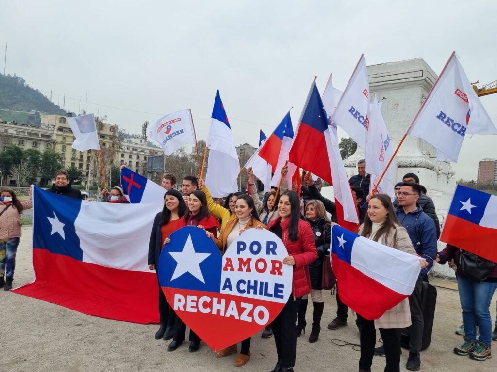 A las 10 de la mañana en la Plaza Italia, La diputada y presidenta del Partido Social Cristiano, Sara Concha, junto con su par de la colectividad, Francesca Muñoz, participaron de un banderazo y una manifestación pacífica para conmemorar un año del triunfo del rechazo en el plebiscito de salida de la propuesta constitucional.