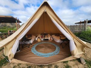 “La experiencia es muy diferente a un domo o una cabaña, ya que literalmente te conectas con la naturaleza, desde que cocinas tu propia comida a la intemperie hasta compartir una fogata o simplemente mirar las estrellas mientras disfrutas con tu familia, pareja o amigos. También es diferente a acampar, porque no tienes que perder tiempo o plata en equiparte: simplemente llevas tu comida, tu ropa y del resto nos encargamos nosotros”, explica Roberto.