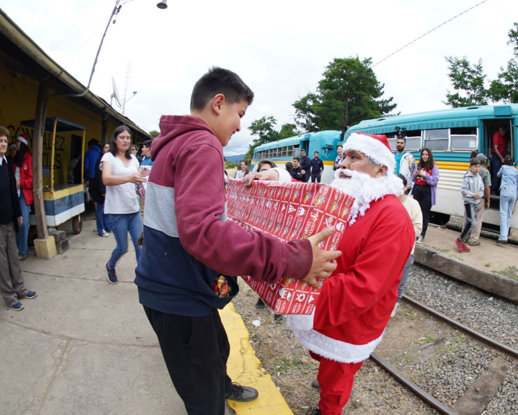 Con el propósito de que nadie quede sin regalo el Tren se detuvo en cada lugar donde hubiera niños, incluso en puntos que no son paradas habituales.