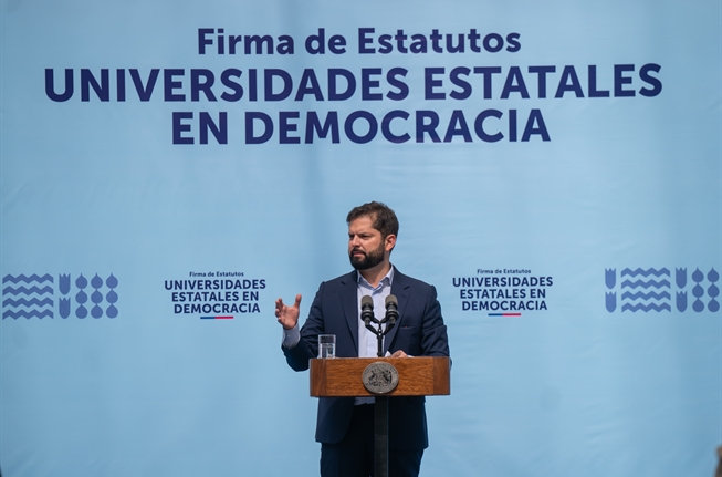 En el Palacio de la Moneda, el Presidente de la República, Gabriel Boric Font -junto al ministro de Educación, Nicolás Cataldo; el subsecretario de Educación Superior, Víctor Orellana; y rectoras y rectores del Consorcio de las Universidades del Estado- firmó los estatutos de las universidades estatales que faltaban por completar, redactados por primera vez en Democracia.