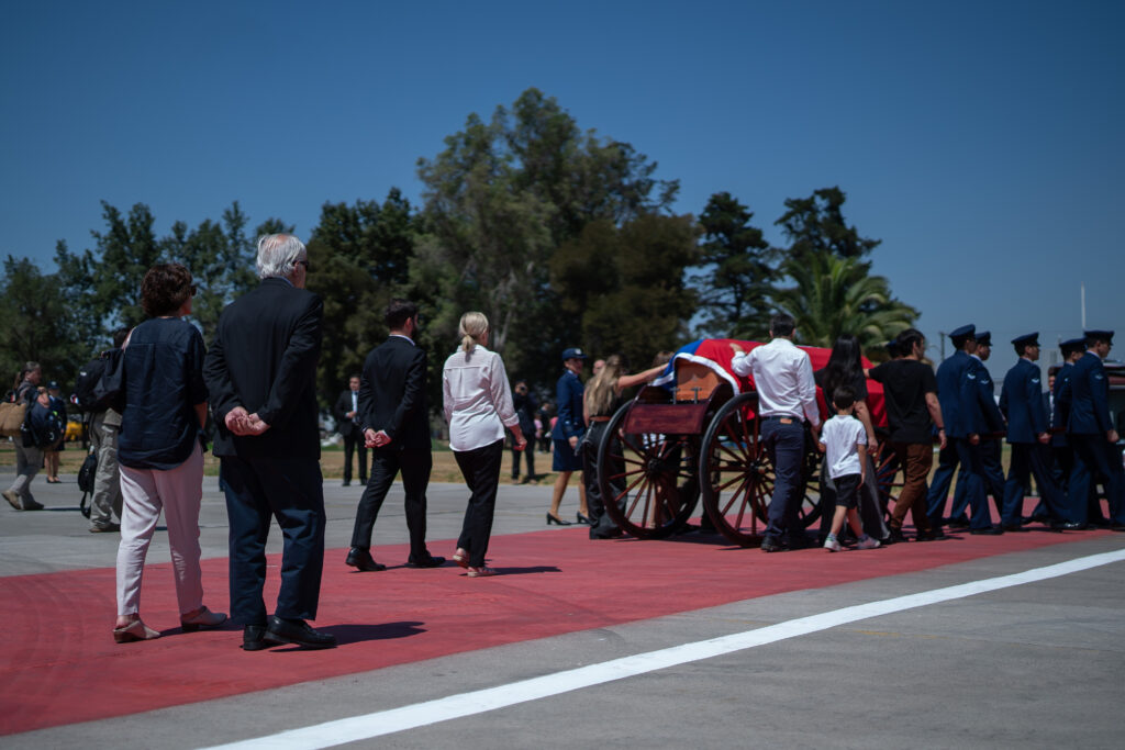 El Presidente de la República, Gabriel Boric Font, acompañado de la ministra del Interior y Seguridad Pública, Carolina Tohá Morales; del ministo de Relaciones Exteriores, Alberto van Klaveren Stork; y de la minista Secretaría General de Gobierno, Camila Vallejo Dowling, llegó hasta el Grupo 10 de la Fuerza Aérea para recibir el féretro del expresidente Sebastián Piñera Echenique, proveniente desde la ciudad de Valdivia, y entregar el pésame a sus familiares y seres queridos.