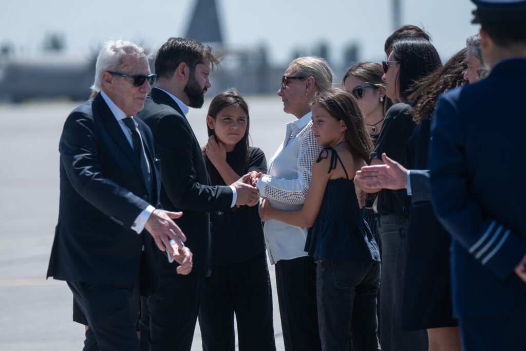 Presidente Boric recibe el féretro del ex Presidente Piñera y entrega pésame a sus familiares y seres queridos