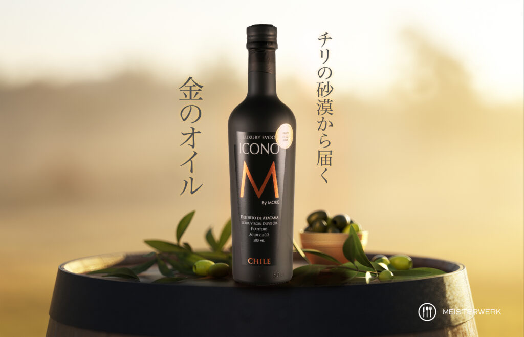 La empresa Meisterwerk Holdings Inc., distribuidor oficial del aceite chileno ICONO By More, del Desierto de Atacama, ha comercializado este producto por más de 10 años siendo altamente apreciado por los japoneses. “Desde 2013, nos dimos cuenta de la calidad del aceite de oliva chileno, y desde esa fecha, las importaciones han ido en aumento, debido a las condiciones climáticas que han permitido posicionar el aceite de oliva chileno como un referente gourmet y de lujo. La crisis mundial ha permitido impulsar más las ventas de este producto”.