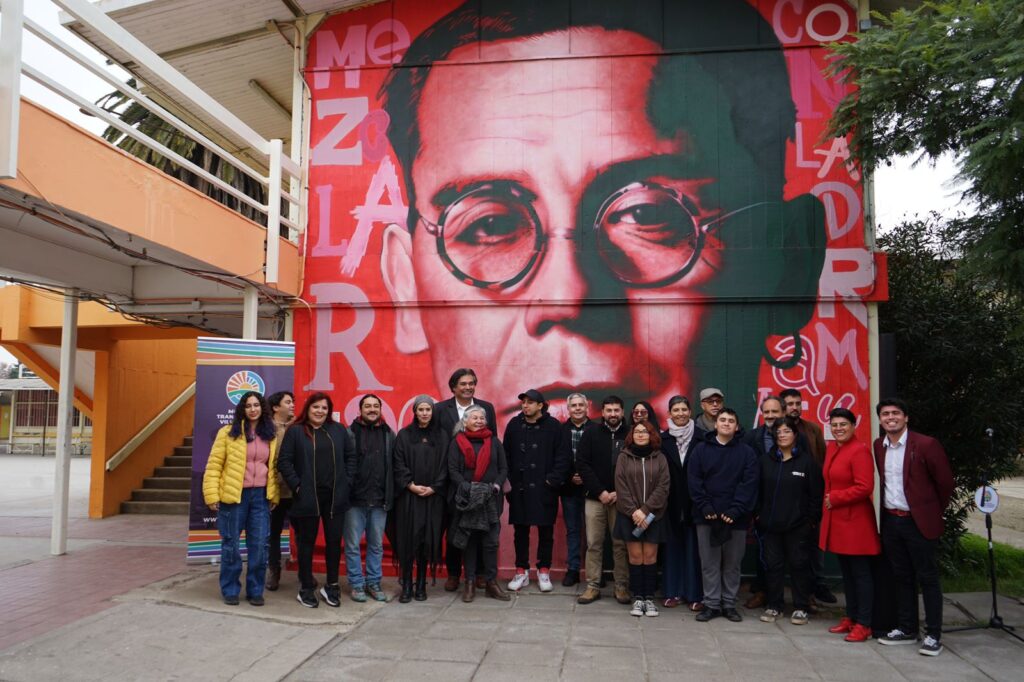 Posterior a esta instancia, se dio el espacio para poder visitar el mural en honor a Andrés Pérez, creado por el muralista Ignacio Tapia, más conocido como “Difuzo Azteca”, quien plasmó en una de las paredes del Liceo Tecnológico un homenaje visual que celebra la memoria y el legado del artista, siendo un punto de inspiración para los/as jóvenes estudiantes del establecimiento.