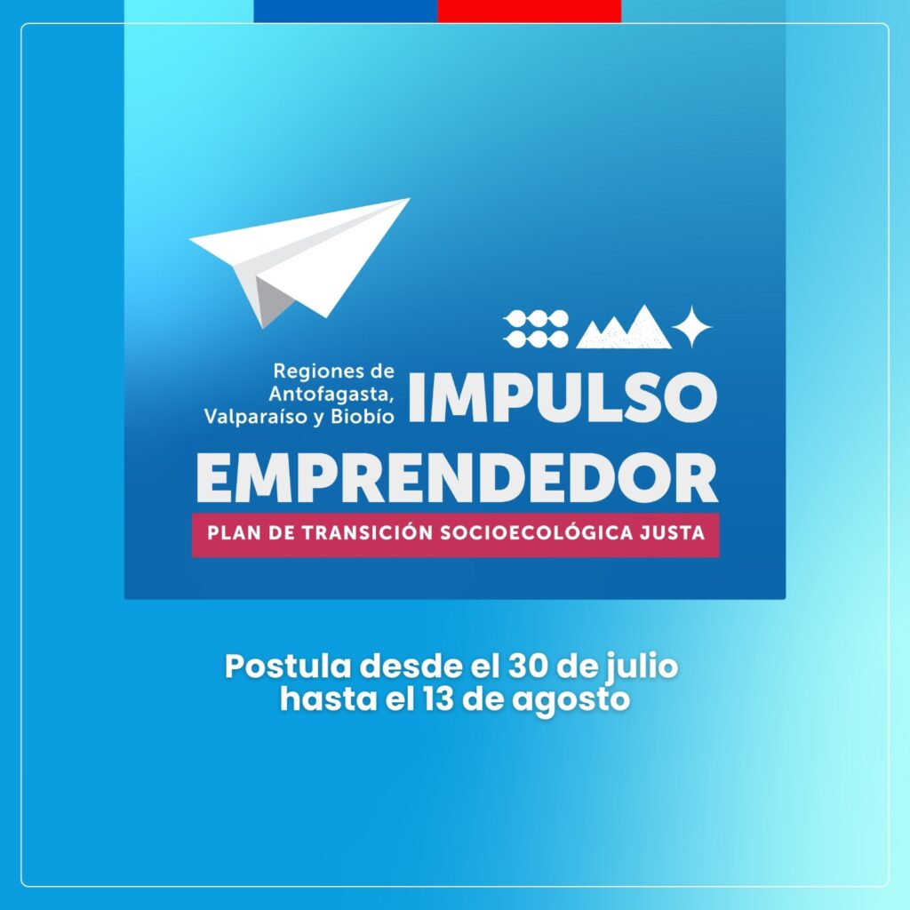 El programa Impulso Emprendedor: Proceso de Transición Socioecológica Justa es una convocatoria impulsada por el Ministerio de Energía y ejecutada por Sercotec, que busca contribuir y dar un impulso al emprendimiento de los trabajadores afectados por el retiro y la reconversión de las centrales a carbón en las regiones de Antofagasta, Valparaíso y Biobío. La iniciativa se encuentra enmarcada en el Proceso de Transición Socioecológica Justa que lleva adelante el Gobierno.