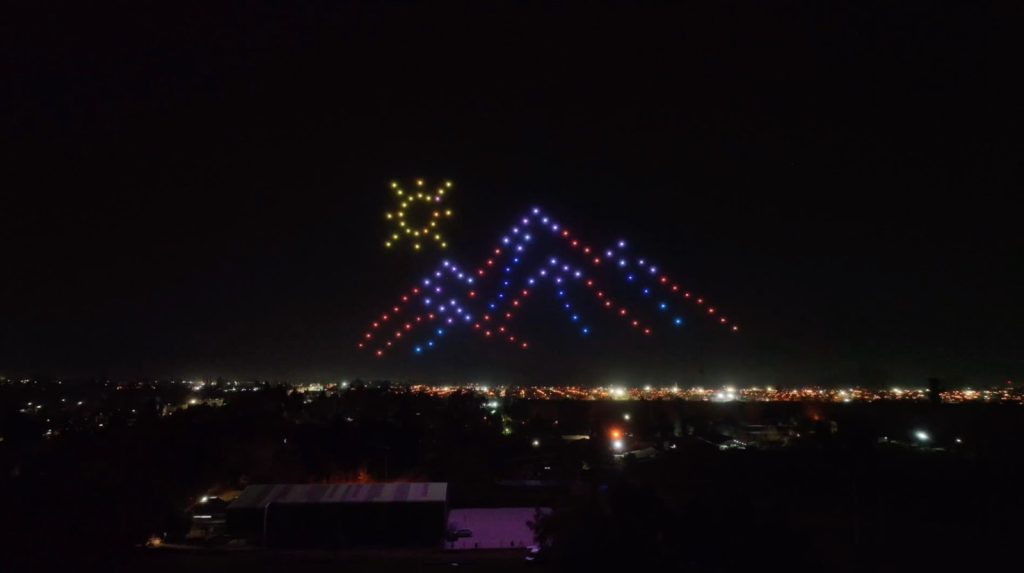 Planificado y ejecutado por UMILES Latinoamérica, este espectáculo de alta complejidad técnica contó con una flota de 120 drones acrobáticos que danzaron al ritmo de la música y generando en el cielo