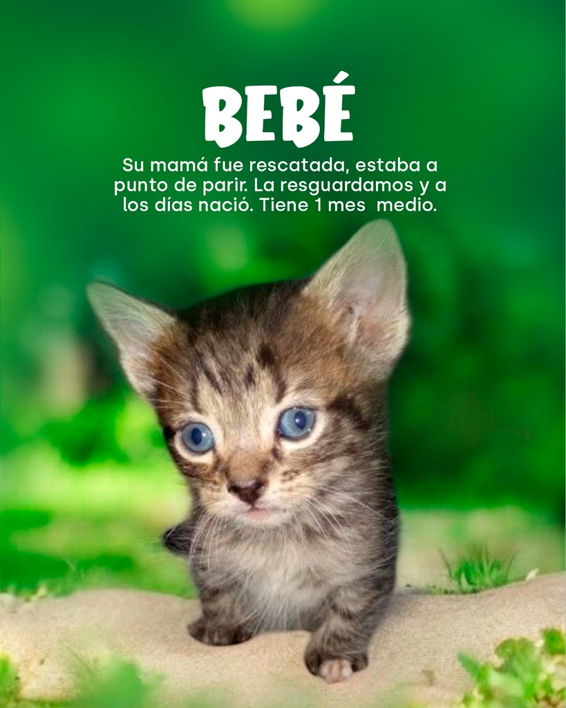 Bebé: Su mamá fue rescatada a punto de parir. A los pocos días nació este gatito, que actualmente tiene un mes y medio de vida.