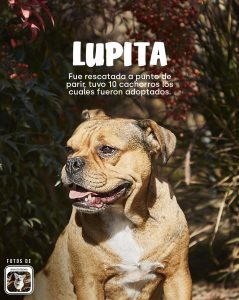 Lupita: Es una perrita que fue rescatada en condiciones muy adversas y a punto de parir. Sus 10 cachorros ya encontraron un hogar y ella espera lograr un desenlace similar.