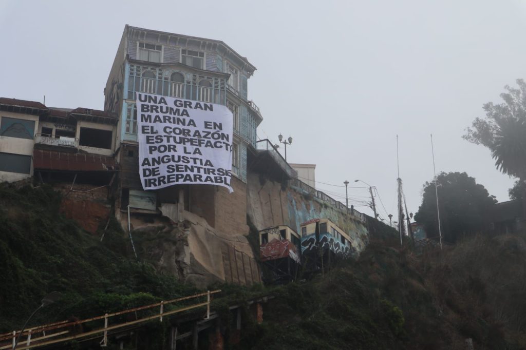 Dentro de las manifestaciones organizadas en protesta por el estado de los ascensores, se realizaron una serie de intervenciones dentro de la ciudad, como un lienzo desplegado frente al ascensor artillería citando un pasaje del poeta Pablo de Rokha, escrito en 1965 en su libro Escritura de Valparaíso, acompañado por un lienzo del artista Pablo Suazo, de la Editorial PLO:
