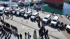 El comandante en jefe de la 1° Zona Naval, Contraalmirante César Delgado, indicó que los vehículos serán distribuidos entre las Capitanías de Puerto y Gobernaciones Marítimas de la región, además del sector de Juan Fernández, lo cual nos va a permitir contribuir a incrementar la seguridad en el borde costero. Es una muy buena señal de parte del Gobierno Regional, de la conciencia marítima, que es un concepto que engloba muchas cosas. La policía marítima tiene un rol fundamental y en el último tiempo hemos logrado un aumento en su dotación, para los más de 6 mil kilómetros de costa que tiene Chile, incluyendo los territorios insulares”.