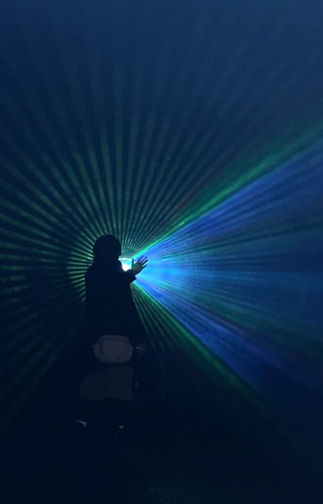 Se trata de una instalación lumínica inmersiva, creada por el arquitecto y artista chileno Ignacio Saavedra, la propuesta invita a contemplar una experiencia sensorial única, a través de una propuesta de luces, voces y aforismos para que el público recorra y contemple, invitando a la reflexión y apertura de nuevas percepciones.
