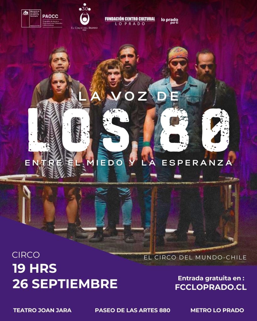 Un espectáculo que fusiona circo, danza y teatro para evocar la memoria de una de las décadas más turbulentas y decisivas de la historia reciente del país. La voz de los 80 propone un viaje conmovedor a través de imágenes, movimientos y acrobacias, acompañado por la potente música de Los Prisioneros, que reactiva los recuerdos de una generación marcada por la lucha social y la búsqueda de libertad.