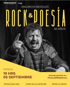 El reconocido músico y poeta chileno Mauricio Redolés conmemora cinco décadas de trayectoria artística en un concierto acompañado por su agrupación Lavanda. Más de una decena de músicos lo acompañarán en escena para revivir algunas de las canciones más emblemáticas de su carrera, como “Quién mató a Gaete”, “Eh Rica” y “Química”, Redolés ha desarrollado una obra única que entrelaza memoria, poesía y reflexión con géneros como el rock y el blues, consolidándose como una de las voces más significativas de la música chilena.