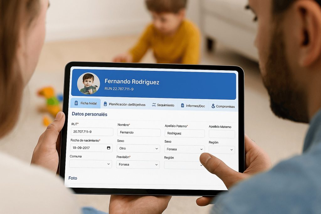 Al ingresar a la plataforma, centros, profesionales y familias pueden acceder a historiales, evaluaciones, bitácoras, pautas de trabajo y objetivos de intervención. Todo está organizado en un solo lugar, lo que facilita el acceso a la información, mejora la continuidad del tratamiento y permite tomar decisiones informadas.