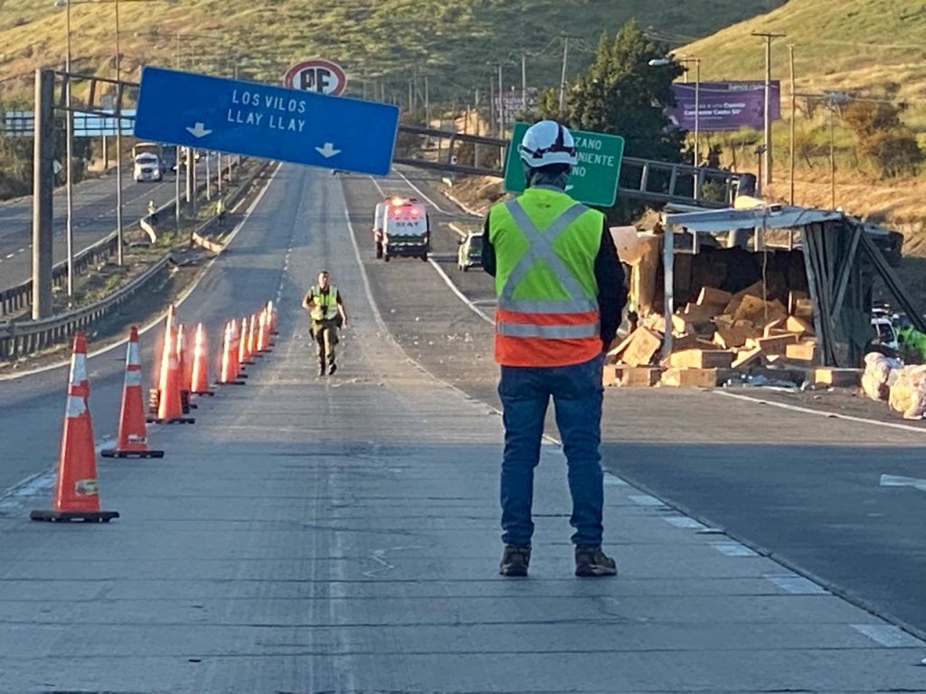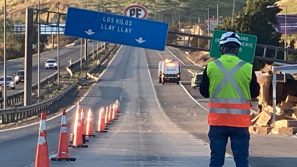 La Ruta 5 Norte hacia el Norte será cortado ya que una señalética que se encuentra en la carretera debería ser removida, tras recibir el impacto del camión.