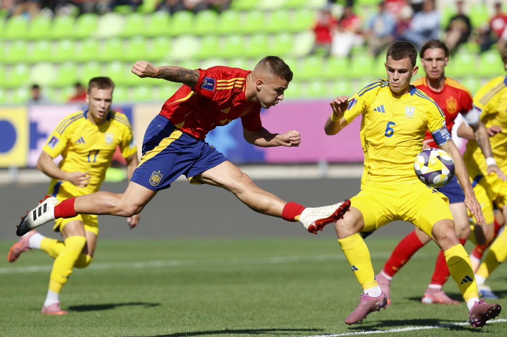 Los españoles asediaron la portería ucraniana en el primer tiempo y finalmente lograron abrir el marcador a mitad de camino. Tras un córner corto con Jan Virgili, García irrumpió en el área, donde fue encontrado por Rodrigo Mendoza. Tocó el balón con la izquierda antes de elevarlo por encima de Vladyslav Krapyvtsov. Matvii Ponomarenko pudo empatar el partido al final del primer tiempo, pero su cabezazo se fue rozando el poste.