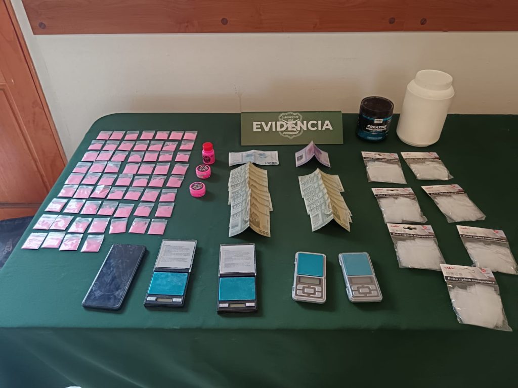 Una vez ahí, se percatan que en esta vivienda se mantenían diversas sustancias y especies destinadas a la venta ilícita de droga; logrando la detención de ambos sujetos y la incautación de las especies.