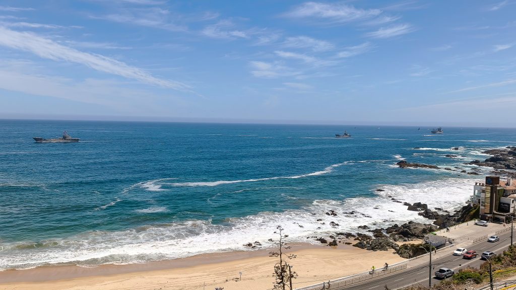 Valparaíso. Este viernes 31 de octubre, la Armada de Chile llevó a cabo una navegación costera entre las comunas de Concón, Viña del Mar y Valparaíso, instancia que marcó el retorno de las unidades bajo el mando del Comando de Operaciones Navales tras casi dos meses de entrenamiento en la zona sur del país.
