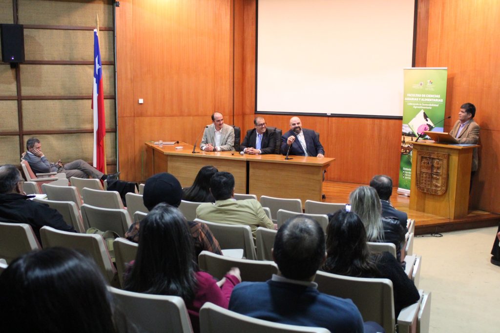 El primer bloque del encuentro estuvo dedicado a la sostenibilidad local, con un panel moderado por Carolina Lizana, decana de la Facultad de Agronomía de la UACh. En la instancia participaron Huguette Bandet, fundadora de Apicultores Orgánicos de Chile; Félix Cancino, gerente de Ovinos San Juan; y Paola Núñez, gerente general de Ganacoop.