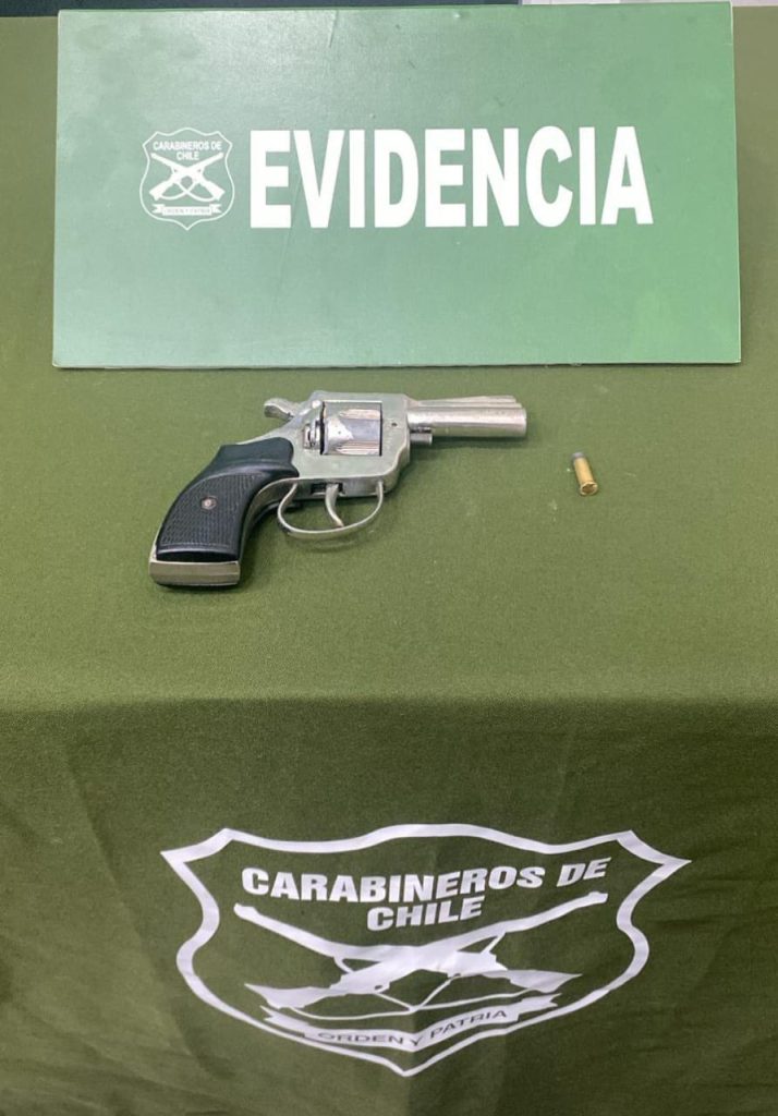 Se incautó un revólver marca calibre .22 corto, y dos municiones una percutada y otra sin percutar cuyo propietario registra domicilio en la comuna de La Cisterna y no mantiene encargo vigente.
