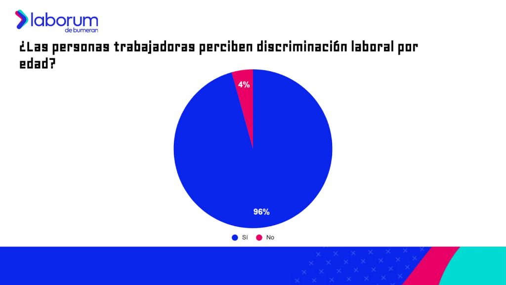 El 96% de las personas trabajadoras cree que en el mundo laboral se discrimina a las personas por su edad, mientras que solo el 4% percibe lo contrario.