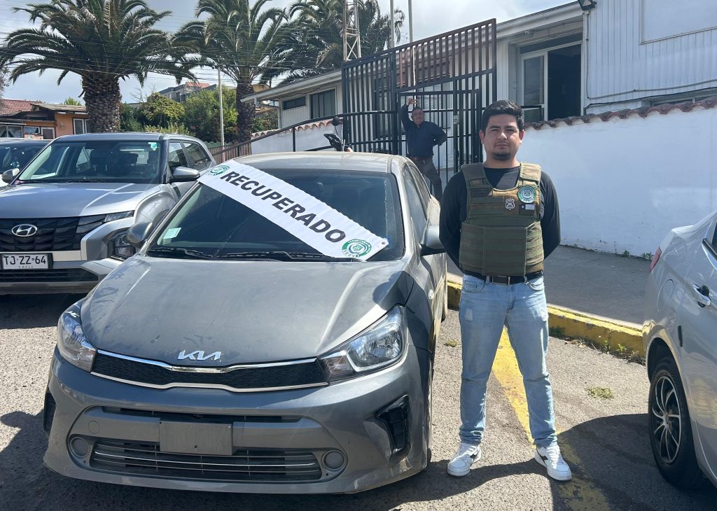 Al proceder a periciar el automóvil en sus series identificatorias, las cuales se encontraban originales de fábrica, se pudo constatar que se encontraban asignadas a otra placa patente, que no portaba, vehículo con encargo vigente por el delito de robo de vehículo motorizado, de fecha 28.07.2024, procediendo a la detención del conductor de un hombre chileno de 33 años, con antecedentes policiales.