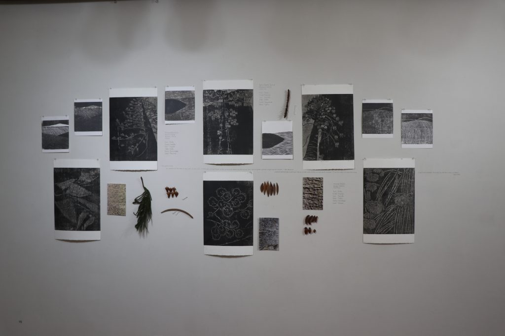 En los trabajos aparecen asuntos que cruzan lo personal y lo colectivo: la memoria reciente del incendio que afectó a la ciudad; el cuerpo entendido como territorio afectivo y político; la relación con lo vegetal y lo orgánico; la construcción de una identidad visual propia frente a las imágenes que circulan hoy. Hay estudios de color y composición, abstracciones de raíz constructiva, exploraciones botánicas, figuraciones escultóricas y registros directos cercanos al documento. No se busca fijar “el estilo” de la Escuela. Lo que aparece es una diversidad de posiciones.