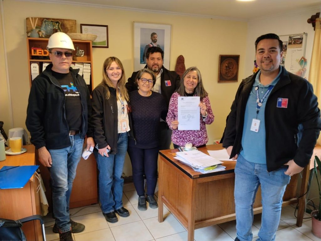 Durante la mañana de este jueves parte del equipo de Infraestructura y Mantenimiento de SLEPV llegó hasta las dependencias del establecimiento de Laguna Verde, para firmar junto a la directora Laura Ríos, la entrega de terrenos a la empresa que instalará las salas modulares.