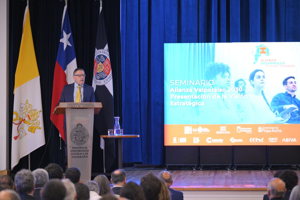 En el mismo contexto, el vicerrector de Administración y Finanzas de la PUCV, Alex Paz, sostuvo que «el seminario Alianza Valparaíso 2030 refleja un punto de inflexión en la forma en que concebimos el desarrollo regional. Desde la PUCV entendemos que el conocimiento, la innovación y la colaboración interinstitucional son las bases para construir una región más integrada, sostenible y justa».