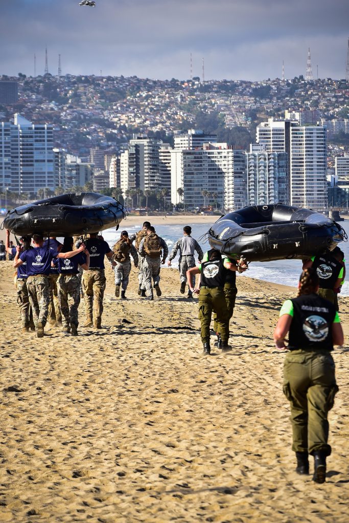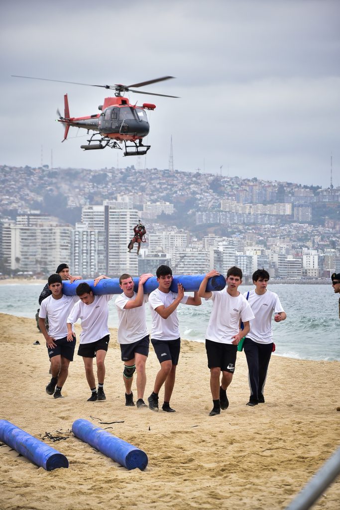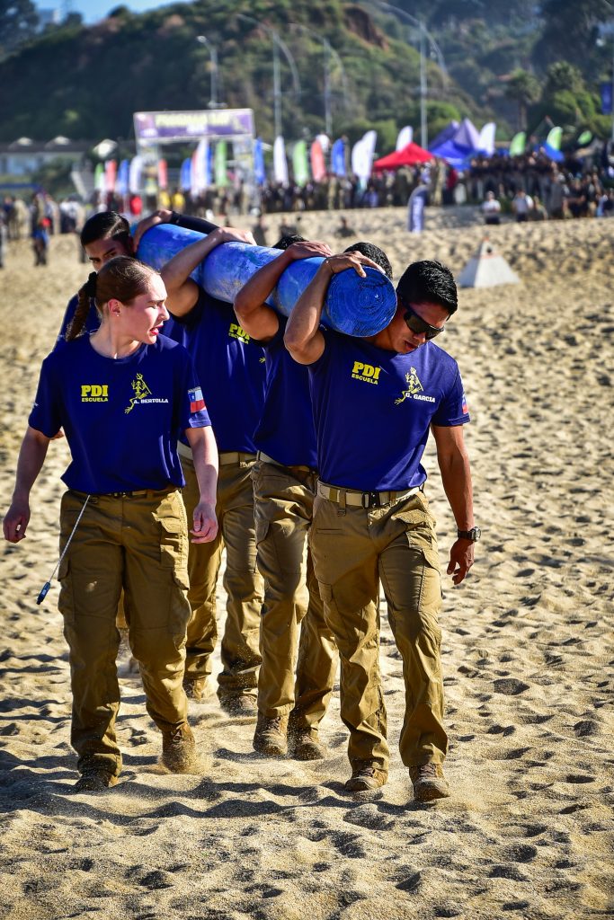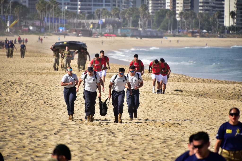 La instancia, organizada por la Armada a través de la Academia Politécnica Naval (APOLINAV), tuvo como objetivo fomentar el liderazgo, el trabajo conjunto, el espíritu deportivo y la resistencia física y mental a través de una carrera de ocho kilómetros por equipos, que se dividió en cuatro etapas -trote por la playa con 10 y 20 kilos en la espalda, traslado de bote de goma y troncos, y cancha de obstáculos- protagonizadas por cinco competidores en cada equipo.
