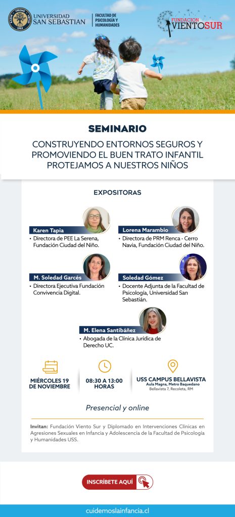 Para abordar esta preocupante realidad, se realizará el seminario “Construyendo entornos seguros y promoviendo el buen trato infantil: Protejamos a nuestros niños”, el próximo miércoles 19 de noviembre, de 08:30 a 13:00 horas, en el Campus Bellavista de la Universidad San Sebastián, Bellavista N°7, Región Metropolitana.