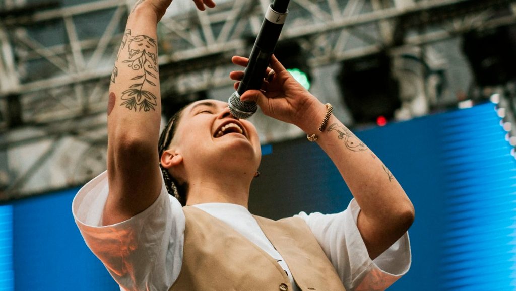 A continuación en la velada viene la intervención musical de la talentosa Pascuala Ilabaca, recientemente nominada en los premios Pulsar 2025 como mejor intérprete del año y mejor Álbum Fusión, con un sentido homenaje sorpresa.