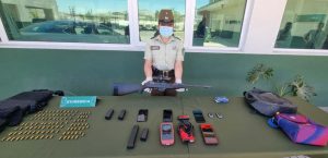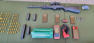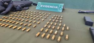 En el interior fueron sorprendidos un segundo hombre y una mujer manipulando munición y cargadores calibre 9 mm, por lo que ambos fueron detenidos. En el procedimiento se incautó un rifle número de serie borrado y mira telescópica, dos chalecos balísticos color negro sin marca, además de diverso material balístico y tecnológico utilizado para clonar llaves de automóviles. Los 3 fueron detenidos por tenencia ilegal de arma de fuego y municiones, además del delito de receptación de vehículo robado.