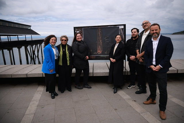 Las ministras de Obras Públicas, Jessica López, y de las Culturas, las Artes y el Patrimonio, Carolina Arredondo, junto al gobernador regional de Los Lagos, Alejandro Santana; la delegada presidencial, Paulina Muñoz; la directora de Arquitectura del MOP, Loreto Wahr; y el alcalde de Puerto Montt, Rodrigo Wainraihgt, dieron a conocer la obra ganadora del concurso “Hito Cero de la Carretera Austral”.