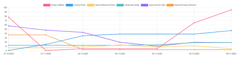 Según el análisis, Evelyn Matthei y Franco Parisi lideraron polos opuestos de efectividad digital.