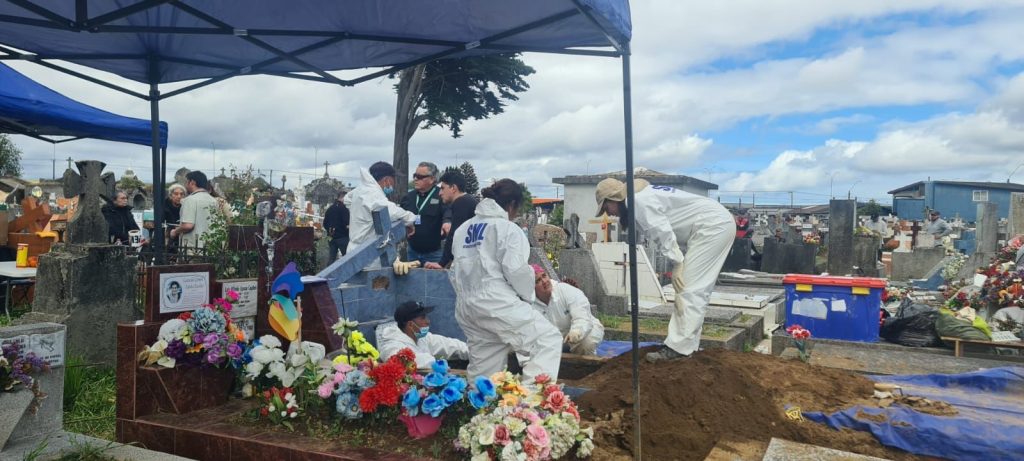 El ministro Mesa Latorre señaló que en el marco de la causa “rol 114.129-K estamos en el cementerio de Valdivia por una causa sobre inhumación ilegal respecto a la persona José René Barrientos. Lo que se está haciendo es ubicar los posibles, porque atendido el tiempo transcurrido estos podrían haberse movidos por diferentes cambios en las tumbas, así que se ha constituido el Servicio Médico Legal con sus peritos y están haciendo ese trabajo, una vez que se encuentren esos restos se van a hacer los peritajes respectivos en laboratorios extranjeros”.