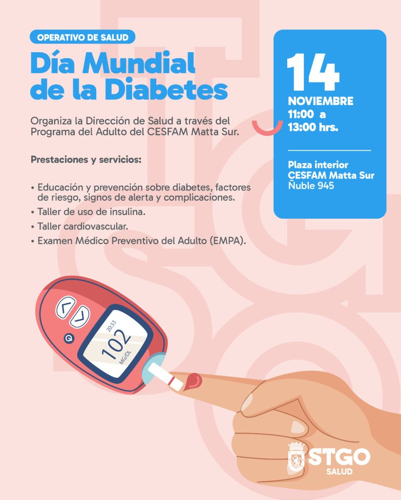 En el marco del Día Mundial de la Diabetes, que se conmemora el próximo 14 de noviembre, la Dirección de Salud de la Municipalidad de Santiago refuerza el llamado a tomar conciencia de una enfermedad crónica y de sus complicaciones, que pueden ser prevenibles y abordables de forma oportuna.