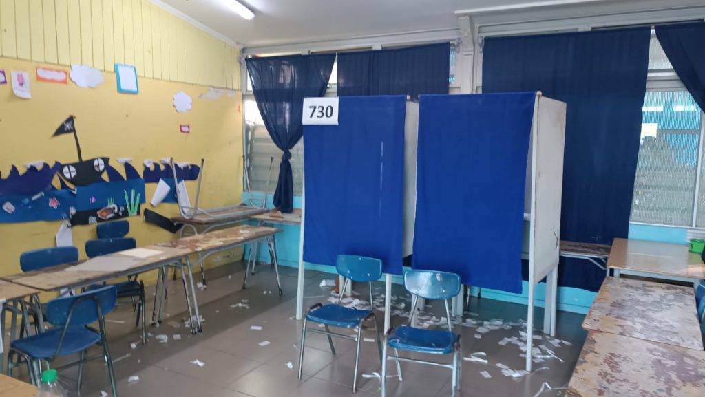 Tal como lo advirtió el Colegio de Profesoras y Profesores de Chile, fueron decenas los establecimientos educacionales que, tras ser recintos de votación, este lunes fueron entregados totalmente desordenados, sin sanitización, con baños sucios, con materiales del proceso electoral como urnas y casetas; e incluso con la presencia de uniformados.