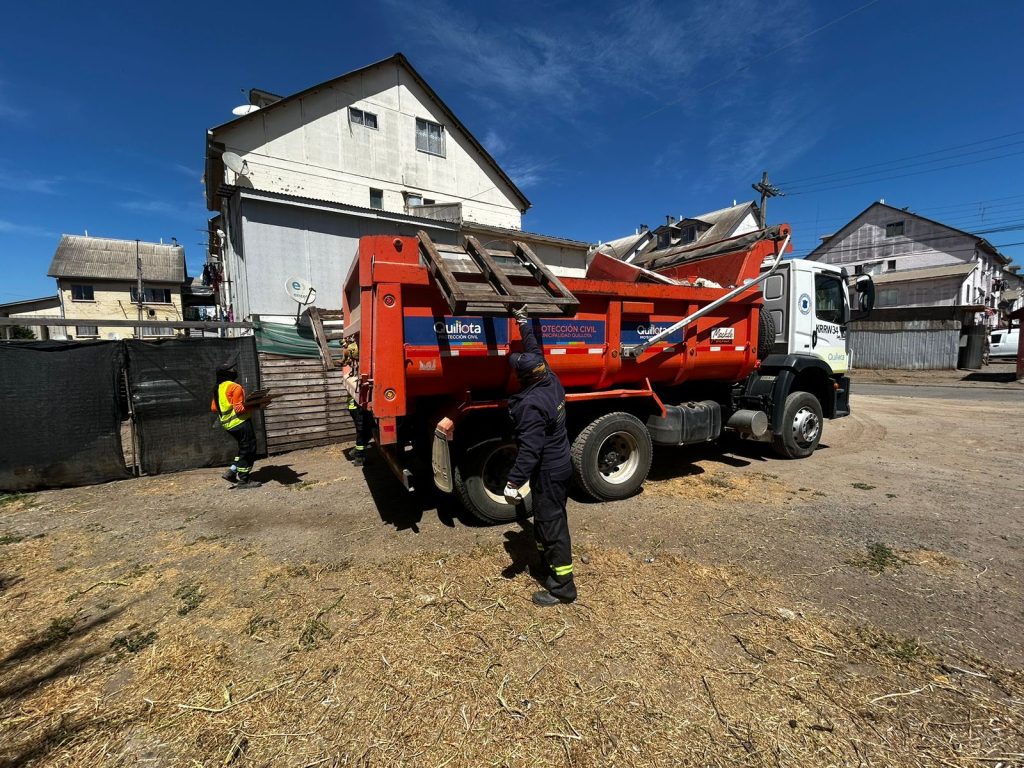 Al lugar llegaron funcionarios de Dideco, Medio Ambiente, Gestión de Riesgo de Desastres, Operaciones, Obras, además de varios programas, quienes se reunieron con los residentes para desplegar las primeras acciones de limpieza, corte de árboles y retiro de escombros, trabajos que contaron con el resguardo de personal de la Oficina Comunitaria MICC de la 4ta Comisaría de Quillota y la Dirección de Seguridad Pública, lo que fue apoyado desde el aire por el dron municipal.