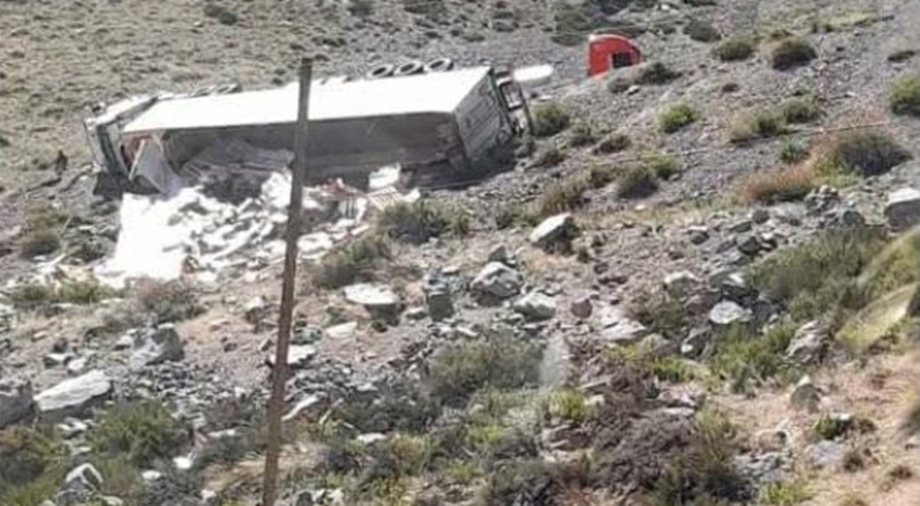 El hecho ocurrió la tarde de este miércoles en la curva número 2 de la Cuesta Caracoles, donde un camión con acoplado volcó a un costado de la ruta, quedando en una peligrosa ubicación en la ladera del camino, con riesgo evidente de desbarrancamiento. En el hecho también se vio involucrada una motocicleta.