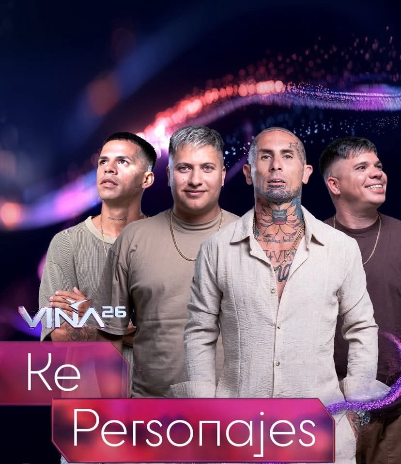 El fenómeno argentino Ke Personajes llenarán la Quinta Vergara con cumbia y baile. La banda formada en 2016 por un grupo de amigos unidos por la pasión a la música. que combinan diversos ritmos desde tropical hasta rock transformó la escena musical con un estilo fresco y contagioso. Su propuesta fusiona la cumbia tradicional con elementos de otros géneros, lo que les permite conectar con públicos de diferentes culturas y edades. Sebastián Boffeli (percusión y dirección musical); Enzo Martínes (Güiro); Joel Brem (Teclado) y el carismático vocalista, Emanuel Noir forman parte de esta exitosa banda. La historia de vida de Noir se ha convertido en un símbolo de superación con su voz cargada de emoción y su presencia escénica magnética. Con actuaciones en toda Argentina, Latinoamérica y España y grandes éxitos como “Pobre Corazón” (con Onda Sabanera), “Cómo Estás”, “Un Finde”(con FMK y Big One), “Ojitos Rojos” (con Grupo Frontera), y “Ya No Vuelvas” (con La K’onga y Luck Ra) se suman a una lista cada vez más extensa de hits.