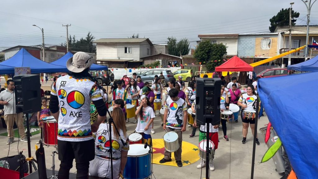 Desde las 15:30 horas, vecinos y vecinas comenzaron a llegar al lugar para participar de una nutrida programación que incluyó batucadas, pasacalle, pinta caritas, banderas circenses, espacio de juegos, música en vivo y actividades socioeducativas. Destacó la participación de la agrupación Bloco Axé, batucada del sector, quienes también realizaron un recorrido festivo alrededor de Los Claveles, sumándose a la Agrupación Murga teatro y circo social El Fen, transformando el espacio en un punto de encuentro comunitario, donde las infancias y juventudes fueron protagonistas.