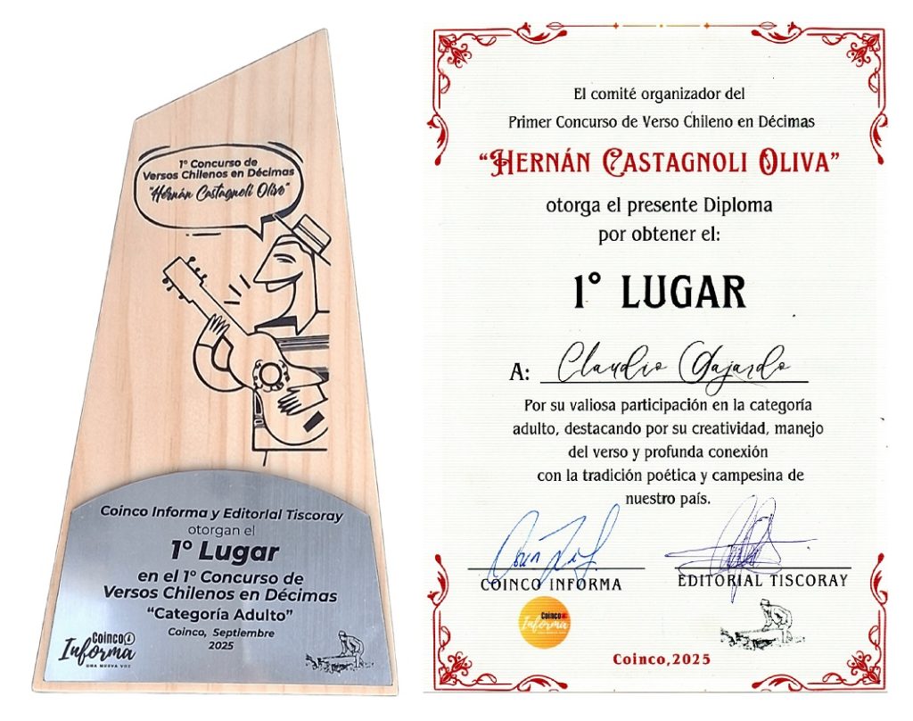 Claudio Gajardo, autor santiaguino de libros que relatan los orígenes del Grupo Congreso como “Shadow-cliff” y “Sonambulismo”, se alzó como ganador en el Concurso de Verso Chileno en Décimas, Hernán Castagnoli Oliva, celebrado en Coinco, Región de O’Higgins.