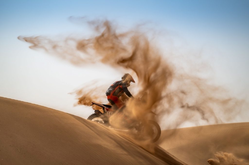 El trazado de este lunes tuvo de todo. Tierra, piedras, rocas, arena y dunas. Cambios de terreno que obligaron a los pilotos a poner atención a la pista y no desconcentrarse porque el más mínimo error costaba una caída o romper neumáticos.