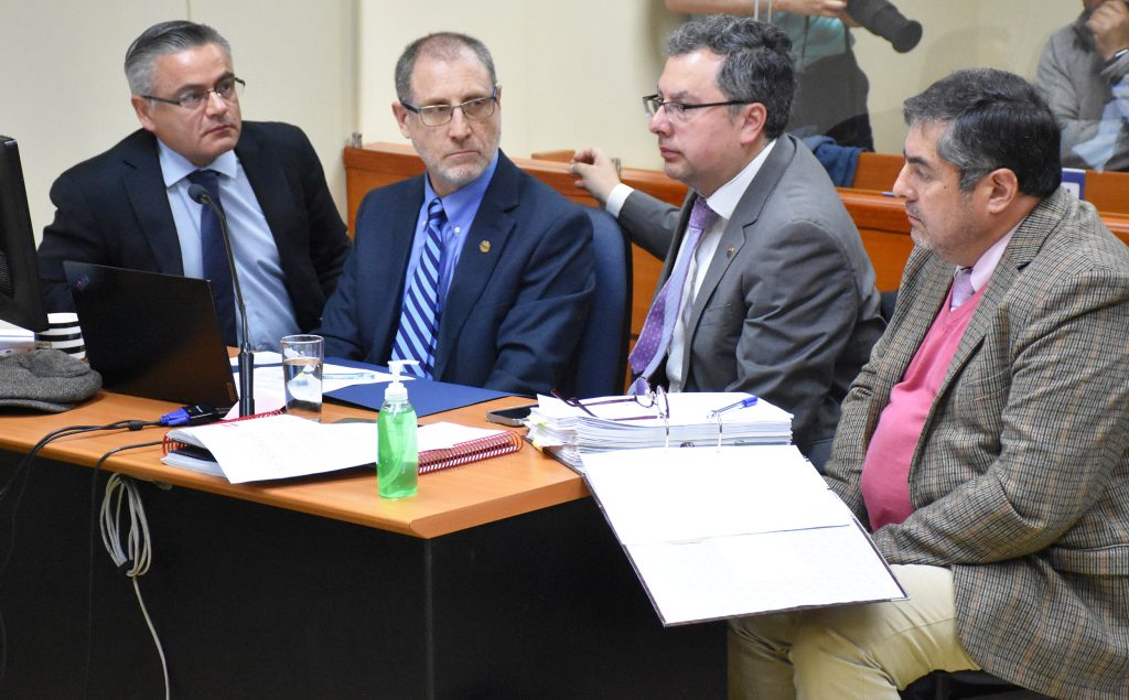 El Fiscal Regional de Aysén, Hernán Libedinsky; el Fiscal jefe de Coyhaique, Luis Contreras; el Jefe de Asesoría Jurídica, Miguel Riquelme y el abogado querellante del Consejo de Defensa del Estado, Alejandro Castro Leiva.