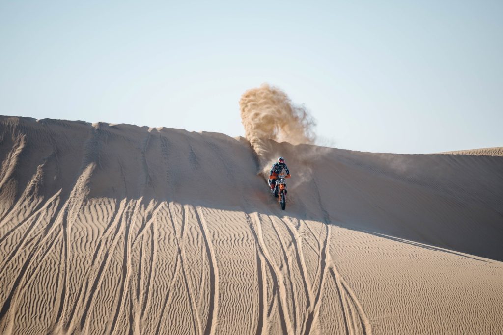 La prueba de este miércoles se preveía más complicada que las anteriores luego de pernoctar en medio del desierto y en condiciones minimalistas (tiendas de campaña, colchones, saco de dormir y raciones militares). El destino fue Bisha con 368 kilómetros cronometrados y 52 de enlace. El tramo fue sobre dunas y arena blanca, es decir, zonas blandas y menos densas, lo que complicaron la conducción y la navegación a todos los participantes.